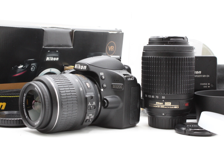 【美品】NIKON ニコン D3200 ダブルズームキット 18-55mm/55-200mm ブラック #LE2026650